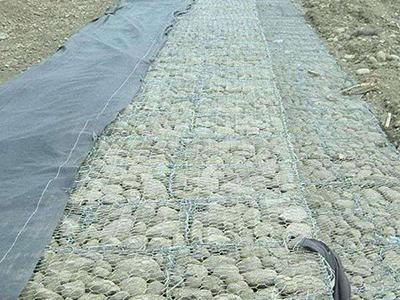 雷諾護墊標準標準為6x2x0.23m(長X寬x厚)。網箱鋼絲選用制品中2.0mm鍍鋅或鍍高爾凡,網眼標準為6x8cm。鍍層的粘附力應到達下述要求:當鋼絲繞具有4倍鋼絲直徑的心軸6周時,不會掉落或開裂。考慮河道沖刷可能弓|起的石墊變形,鋼絲的抗張強度應在350~550N/mm2之間,延伸率不低于10%。
