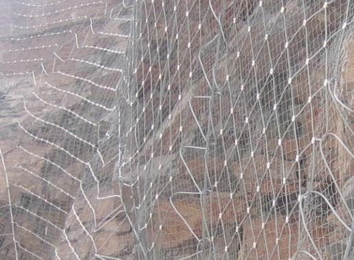 sns柔性防護網材質:鋼絲繩網、支撐繩和減壓環。