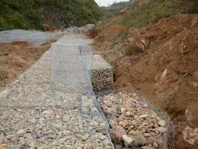 鉛絲石籠在施工現(xiàn)場經(jīng)石頭填充,構(gòu)成具有柔性、透水性及整體性的結(jié)構(gòu), 如擋墻、河道襯砌、堰等支擋的防沖蝕工程。